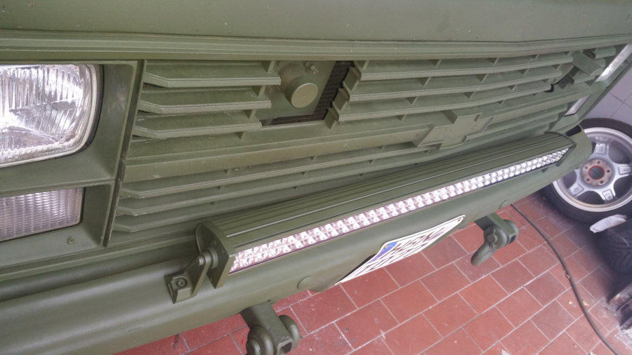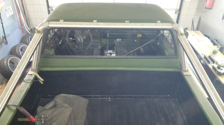 Eigenbau Überrollbügel, LED Zusatzscheinwerfer und LED Lightbar, 6 Tonnen Seilwinde, Beschriftung, Ladeflächen und Innenraumbeschichtung auf abriebfester