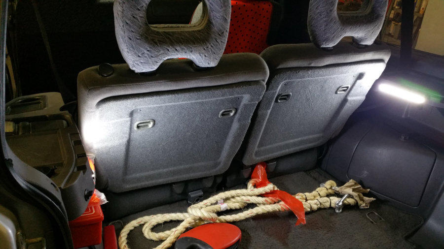 Heckklappenabdeckung aus USA, bessere Kofferraumausleuchtung, Carbonauflagen für die Türen innen in Eigenbau.