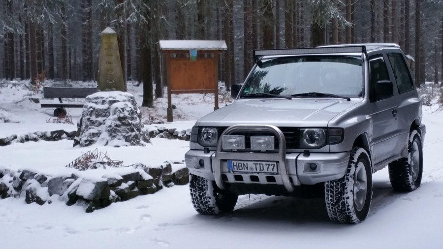 Entrostung Rahmen/Karosserie, 3cm Höherlegung, 8x18 Delta Felgen, 285/60 R18 AT Reifen, Zusatzscheinwerfer Frontschutzbügel, 300W LED Bar mit Eigenbau