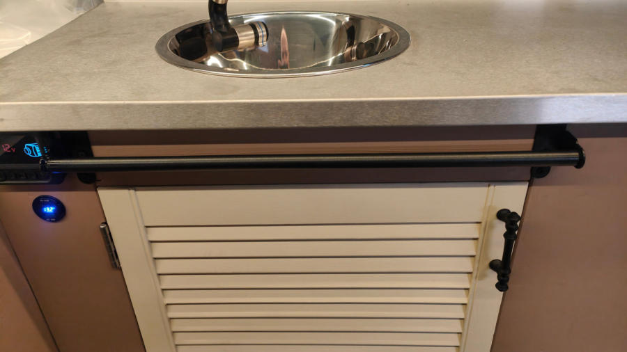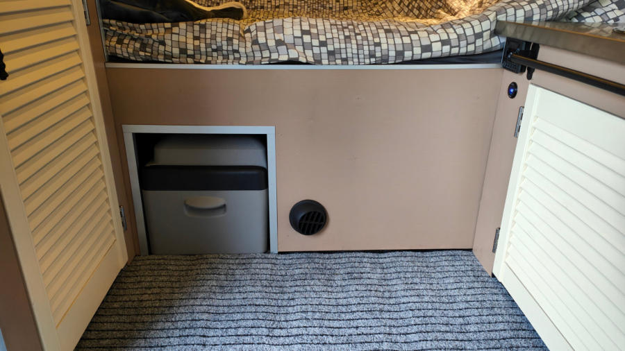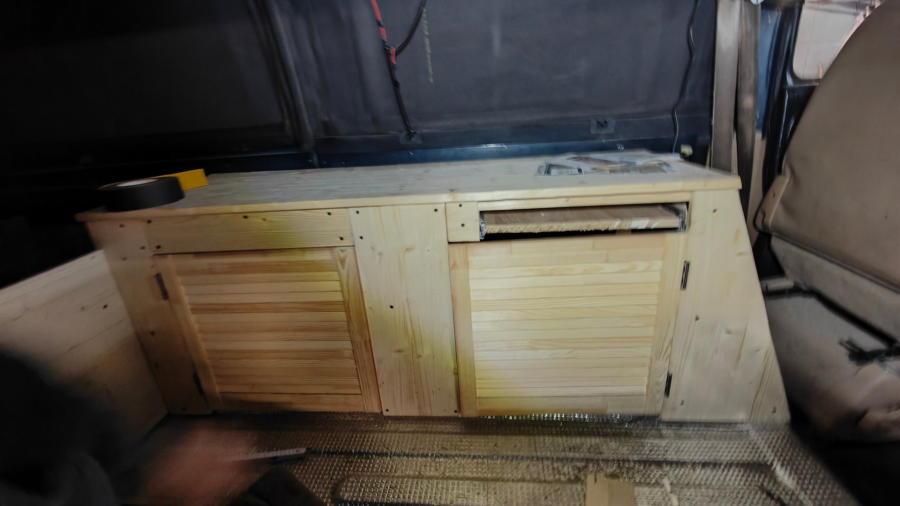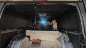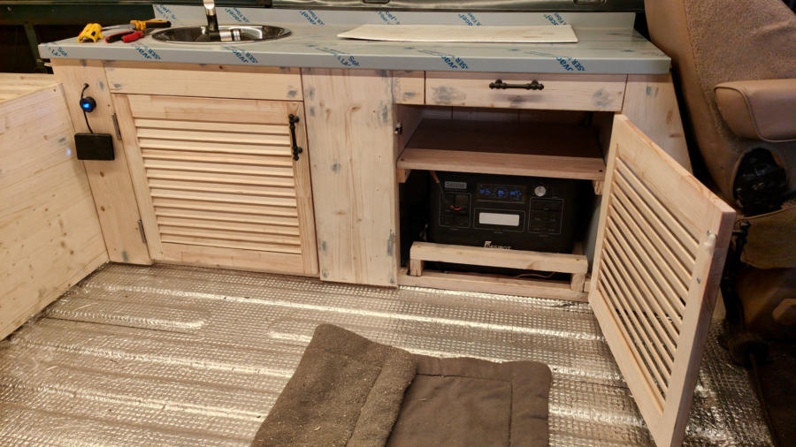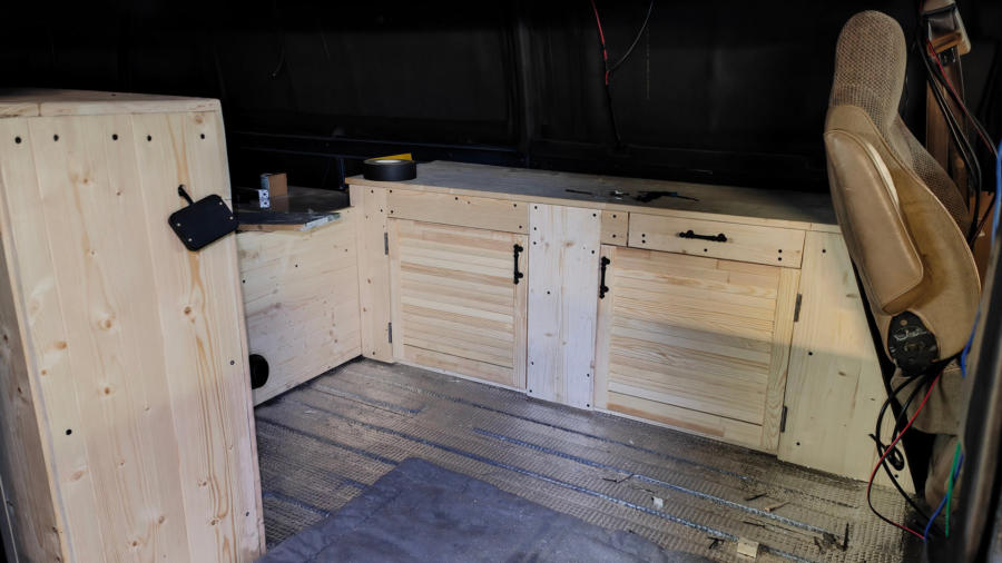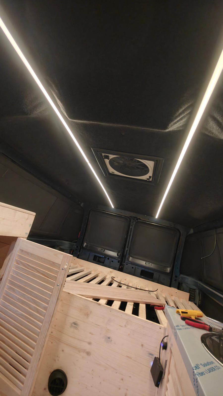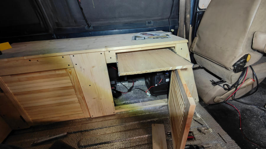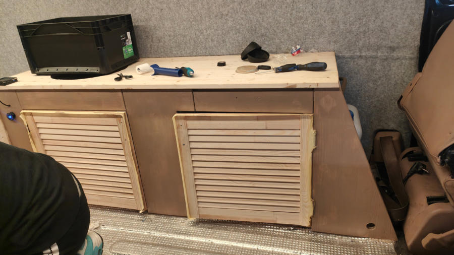 diverse 12 und 220V Steckdosen, Kompressorkühlschrank, mehrere USB PD Schnelladebuchsen, Reservekanister, Heckleiter, Teppichboden, Armaflex