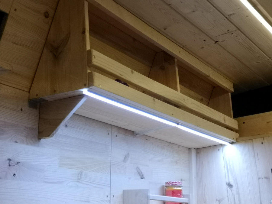 Luftstandheizung mit Luftschalldämpfern, Küchenzeile, Bett, Stauraum, Solaranlage, Zusatzbatterie, LTE Wlan Hotspot, Android Radio mit Zugriff aufs
