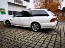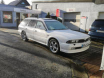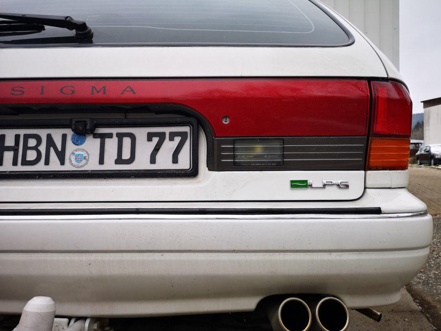 Dieser Sigma Kombi wurde mit einer LPG Gasanlage nachgerüstet und nach 6 Jahren Standzeit wieder in Betrieb genommen.dementsprechend gab es natürlich auch einiges zu Überholen und auch zu verbessern.Auser den Wechsel von Verschleißteilen wie Koppelstangen, Stoßdämpfer, Riemen und Co, wurden folgende Sachen ebenfalls Nachgerüstet:Ein Android Radio welches auf Cochlear Implantate für Gehörlose Streamen kann. Ein Waeco Magic Speed Tempomat elektrisch adaptiert an eine Mitsubishi Sigma Limousine 24V Lenkradfernbedienung. Eine Funkfernbedienung für die Zentralverriegelung. Ein verchromter Frontscheibenrahmen der 24V Limousienen. Die Kompletten Türaufsätze/Seitenverplankungen und Schwelleraufsätze der 24V Limousienen. Eine Frontstoßstange mit Nebelscheinwerfern der 24V Limo Vorfaceliftmodelle, das fein struckturierte Wurzelholz der ersten Sigma 24V Generatioin. 24V Serien-Alufelgen. Ein Münz und Ablagefach der 12V Sigmas mit Verlegung desHechscheibenwischerschalter. Tönungsfolie von 3M an den hinteren Scheiben, Seitenwindabweiser vorne. Windabweiser für das Schiebedach. Ein Aufrüstkatalysator auf Euro2 Abgasnorm. Ein Trenngitter für den Laderaum. Ein paar Endrohre. Der Austausch sämtlicher rampornierter Chromteile. Eine Schalthebelverkürzung, ein Codeschloss von einem 86er Oldsmobile mit speziell angefertigtem Steuergerät sowie ein Komfortblinkmodul.Geplant ist nun noch eine Standheizung. So gesehen ist das Auto jetzt sehr Komfortabel zu bewegen, und verbraucht auf 100Km ca 10 bis 11 Liter Autogas. Bei einem Preis von derzeit 58 cent/ Liter bewegen wir uns auf dem Kostenniveau einen Kleinstwagens. Meine letzten Tankwerte waren 460Km für 28 Euro.