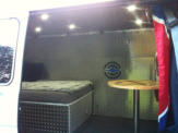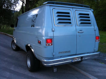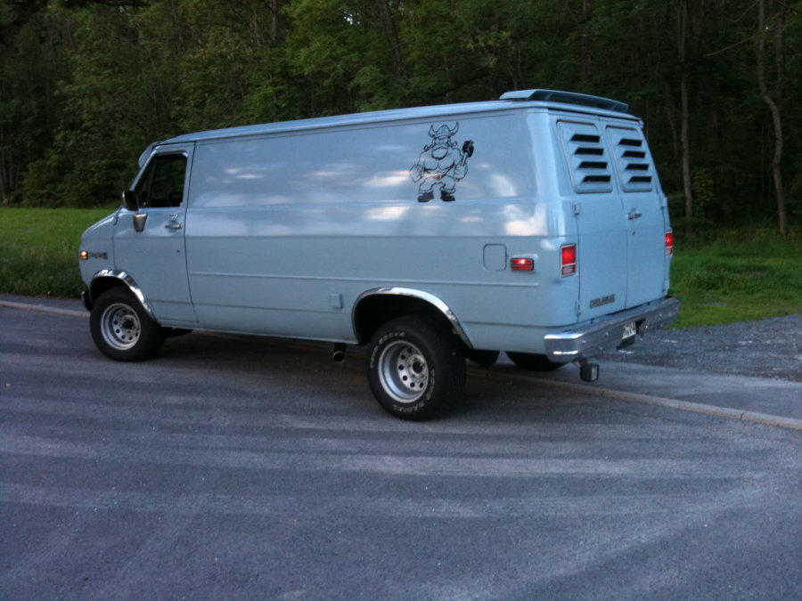 Hier eine Komplettrestaurierung und Lackierung eines 83ers Chevy G20 Van. 5.7L V8 244PS. Mit Motoroptimierung z.b. Edelbrock Vergaser. Dieser hier war die seltene Cargo Variante des G20. Sie ist bekannt aus: Das A-Team. Der Van erhielt viel Zubehör von mir. Pontiac Trans Am Heckspoiler auf den Dach, Truma Standheizung, 10x15 Felgen, Eigenbau Tisch, Innenverplankung aus Aluminiumtafeln, Teppichboden, LED Beleuchtung, Sunvisor aus USA, Solaranlage auf dem Dach u.v.m