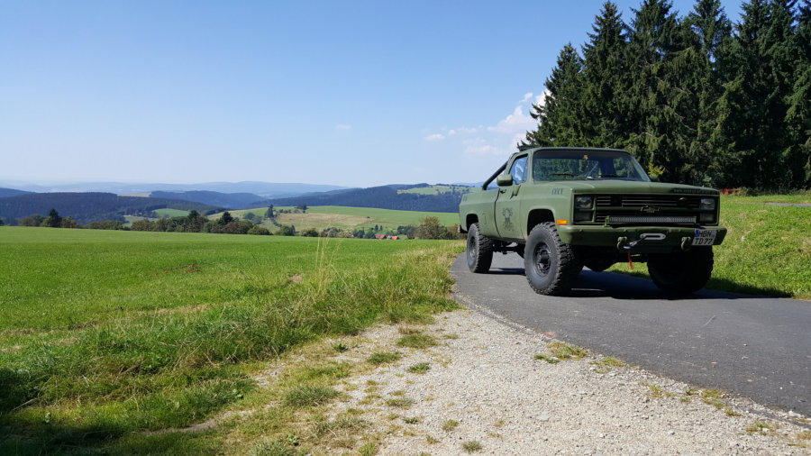2016 kamen nochmal neue Reifen/Felgen auf den Chevy, selbstverständlich wieder mit Notlaufringen. Jetzt steht er auf 37X12.5 R16,5 BF Goodrich Baja A/T Bereifung,