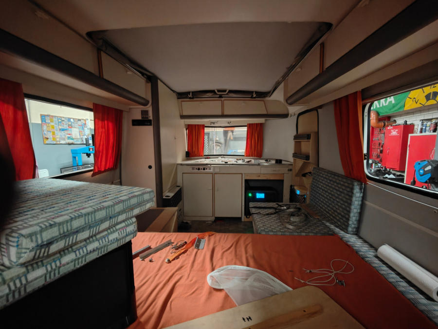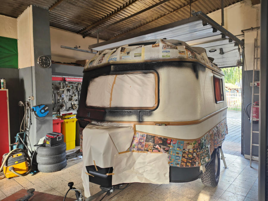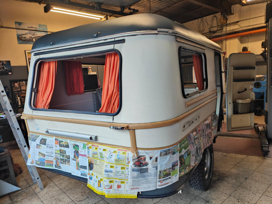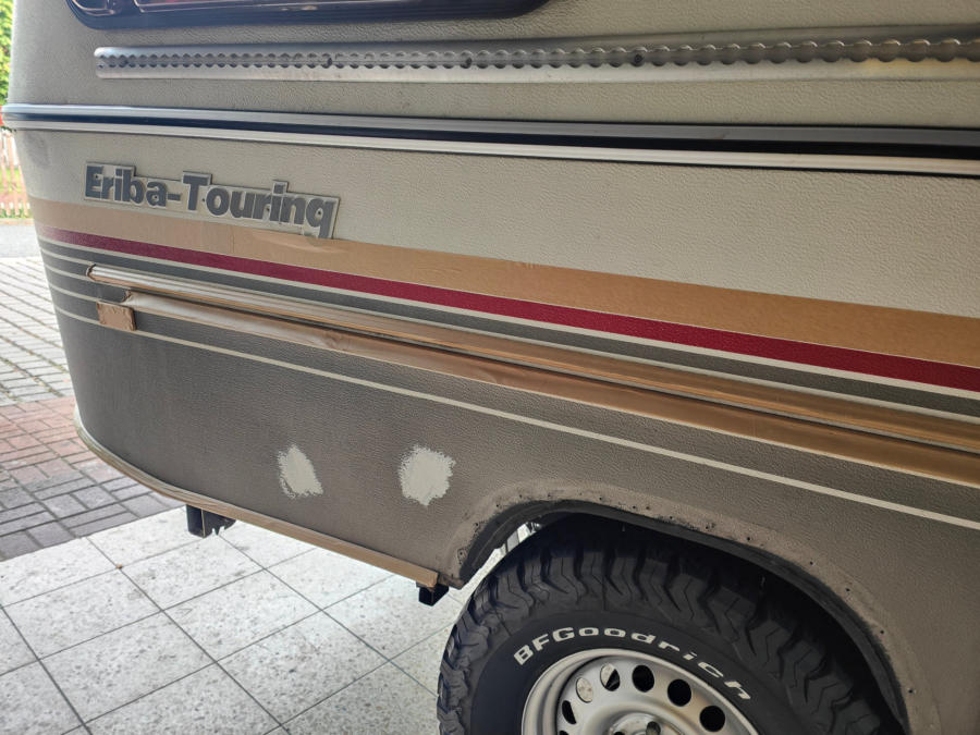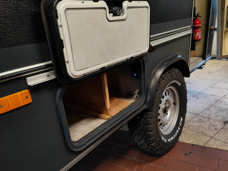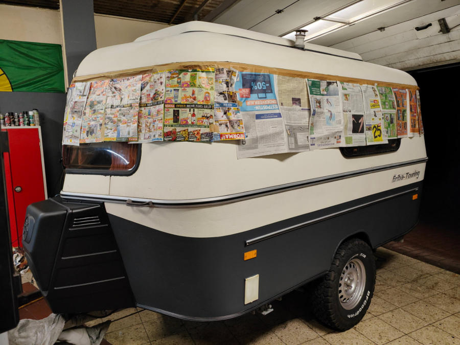 Umbau eines 1989er Eriba Pan Wohnwagen zum Autarken Offroad Camper.360W Solar, 2200W Solargenerator, BF Goodrich Offroad Bereifung, Höherlegung, Heizmöglichkeit für LPG Autogas und Diesel/Heizöl, Raptorbeschichtung, Trinkwasserfilteranlage, Tankgasflasche, Rückfahrkamera etc.